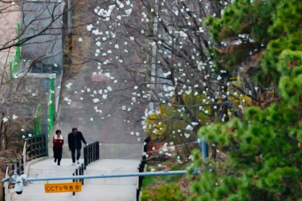 문득 시야 아래로 소나무 위에 앉은 까치 두어마리가 보입니다. 저녁이 되니 쉬나봅니다. 더 아래로는 일터나 볼일을 마친 사람들이 집으로 돌아오는 듯 계단을 올라오는 모습도 보입니다. 저녁이 되면 다들 돌아옵니다. 더 멀리로는 아직 어둠이 다 채우지 않은 우리마을이 보입니다. 평화로워 보이는 우리 마을. 우리가 여행을 마치면 집으로 돌아갈 때 천국도 저랬으면 좋겠습니다.